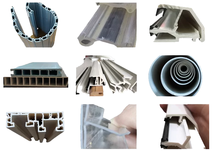 PVC window profiles available in rigid, soft, and wood-like extrusion options.